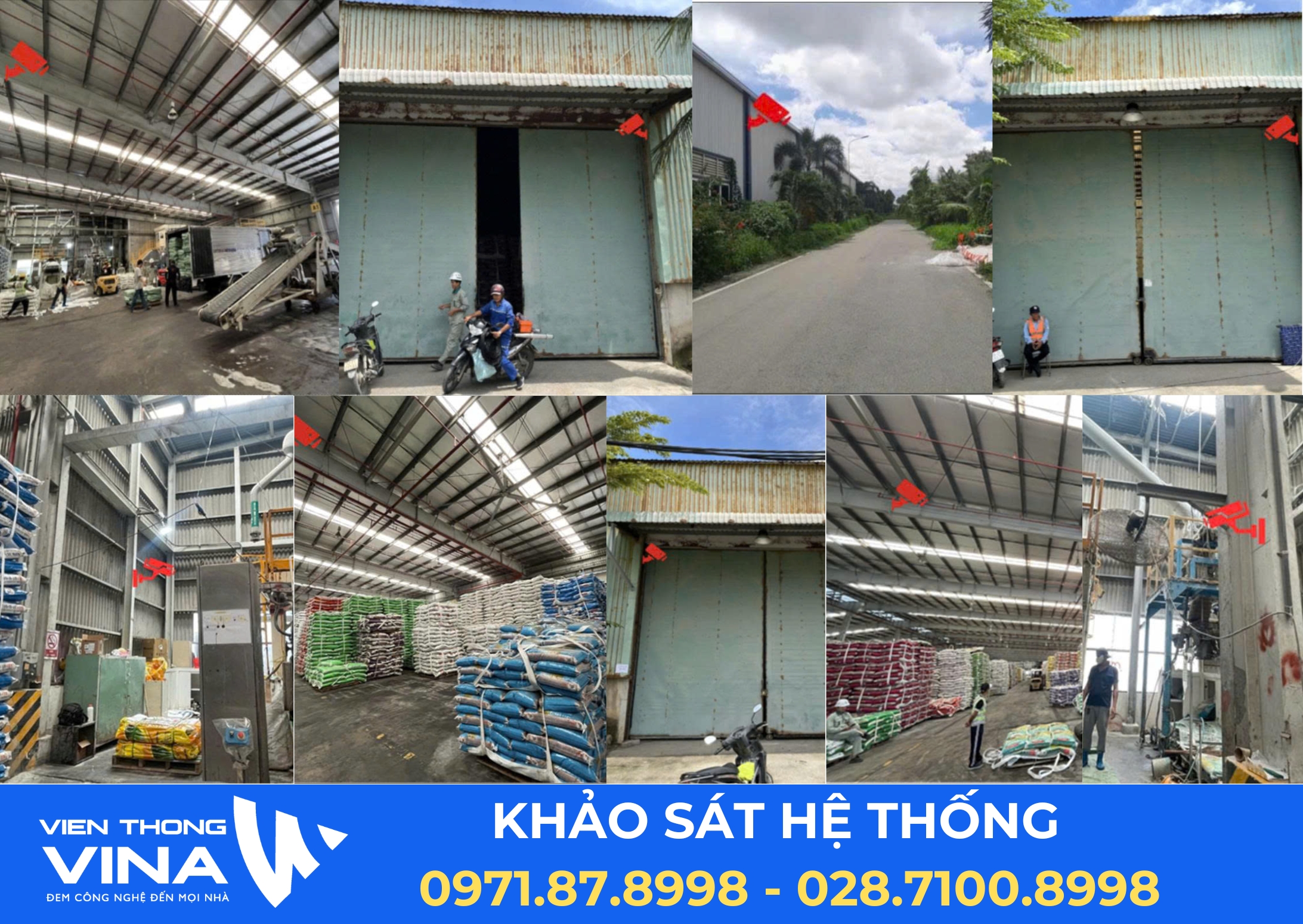 Kỹ thuật viên tiến hành khảo sát toàn bộ khu vực văn phòng – nhà xưởng, từ đó đề xuất giải pháp 9 camera quan sát IP ngoài trời, đảm bảo bao quát cổng chính, khu sản xuất, kho hàng và khu vực xe ra vào.